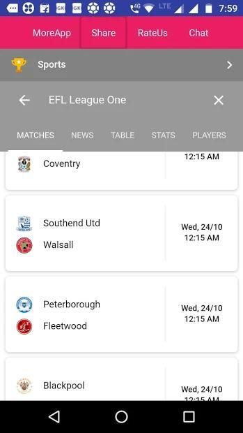 This App Provides all about England League One with Live Score, Point Table, Fixture, Results,Top Scorers, Team Names,Player List .