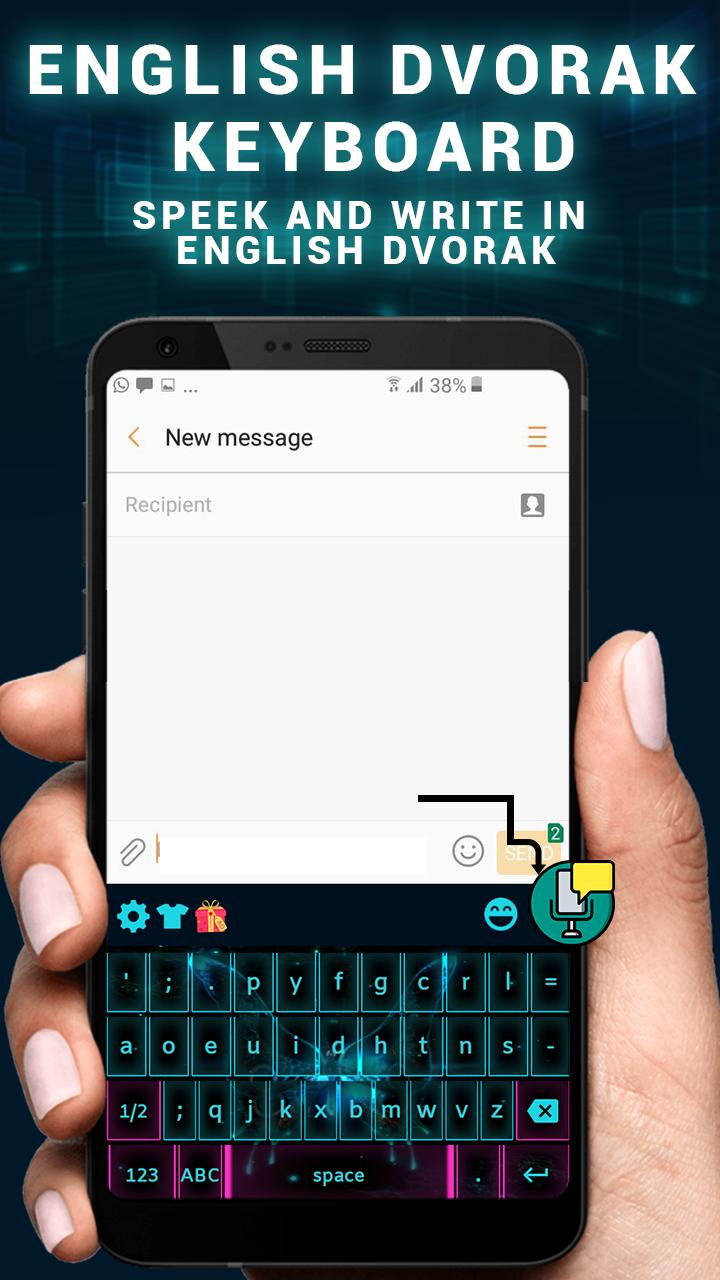 The best English Dvorak keyboard for Android. Download it and do give us some feedback so that we can improve our English Dvorak keyboard