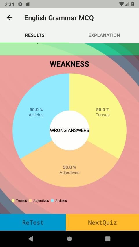 Each quiz has 10 questions after completing these questions there will detailed analysis shown with answers.