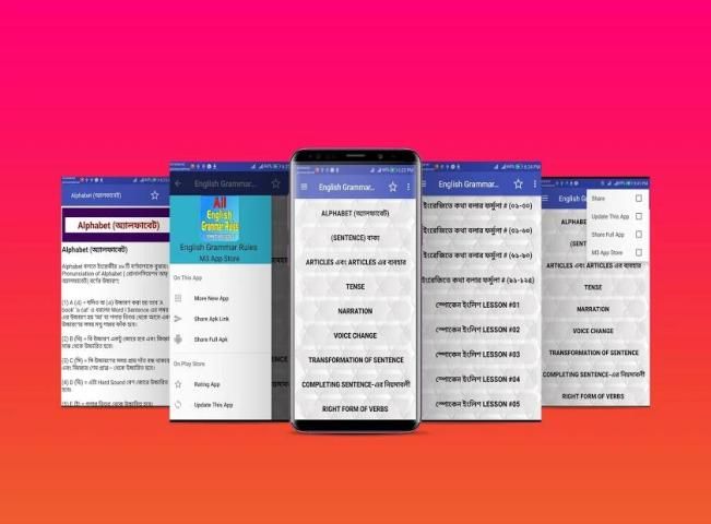 (Bahasa Inggris-Bangla) adalah aplikasi pembelajaran bahasa yang menyediakan ide dasar yang lengkap dari elemen tata bahasa Inggris. Topik-topik tata bahasa benar-benar tercantum dalam aplikasi di mana Anda dapat dengan mudah menemukan topik yang Anda inginkan. Pada dasarnya aplikasi ini menyediakan Anda dengan buku tata bahasa yang lengkap.
