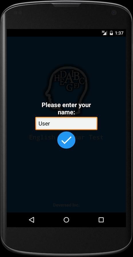 Tata Bahasa Inggris Test adalah aplikasi yang berguna untuk memeriksa pengetahuan Anda tentang tata bahasa Inggris. Semua bahan yang dibuat dan disusun oleh penutur asli bahasa Rusia dan Inggris. desain minimal dan antarmuka yang sederhana yang nyaman bagi mata dan membantu pengguna untuk menghindari kemungkinan gangguan. Dengan aplikasi ini, Anda dapat belajar bahasa Inggris hanya dengan menggunakan perangkat Android Anda. Dengan aplikasi ini Anda akan yakin untuk: