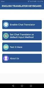 Obrolan English Translator memiliki layout keyboard dengan Terjemahkan Option. Pengguna dapat menggunakan keyboard sebagai manipulator yang membantu dalam menulis bahasa apapun atau untuk meningkatkan keterampilan mengetik. Tombol menerjemahkan dalam layanan ini akan membantu Anda mengkonversi teks dari bahasa Inggris ke bahasa yang Anda inginkan. Bahasa yang dipilih saat ini untuk penerjemahan dapat dipilih melalui pengaturan aplikasi. Sebuah klik pada tombol adalah semua yang diperlukan untuk terjemahan langsung. Mengubah pengaturan bahasa? Hanya melakukan tekan lama, mengubah bahasa, dan tombol akan menampilkan daftar drop-down dari semua bahasa.