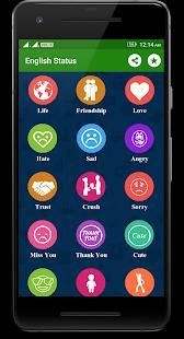 Aplikasi ini berisi terbaik Inggris staus dengan 62 cateogories yang berbeda.