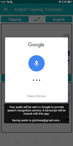 - Discurso al texto de cualquier palabra y oración en inglés y tagalo, en inglés. (Traductor de tagalo)
