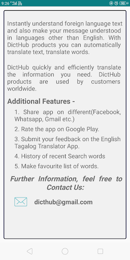 - Free Translator app for Track your Translation History in offline Mode.(English To Tagalog