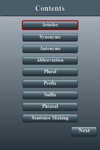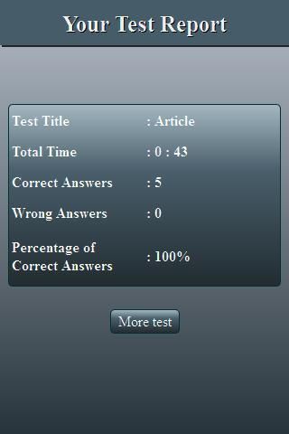 When the student/user makes a mistake the application indicates and also shows the correct answer. Take the grammar tests repeatedly and analyse your improved results each time.