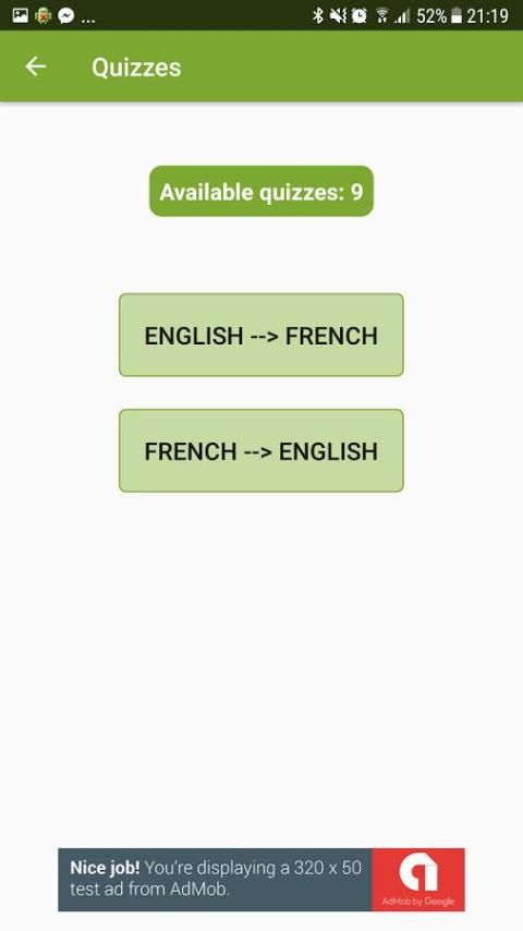 Menguji kosakata Anda dengan banyak kuis dari bahasa Inggris ke bahasa menargetkan atau dari bahasa target ke Bahasa Inggris dengan masing-masing kuis containig 10 pertanyaan