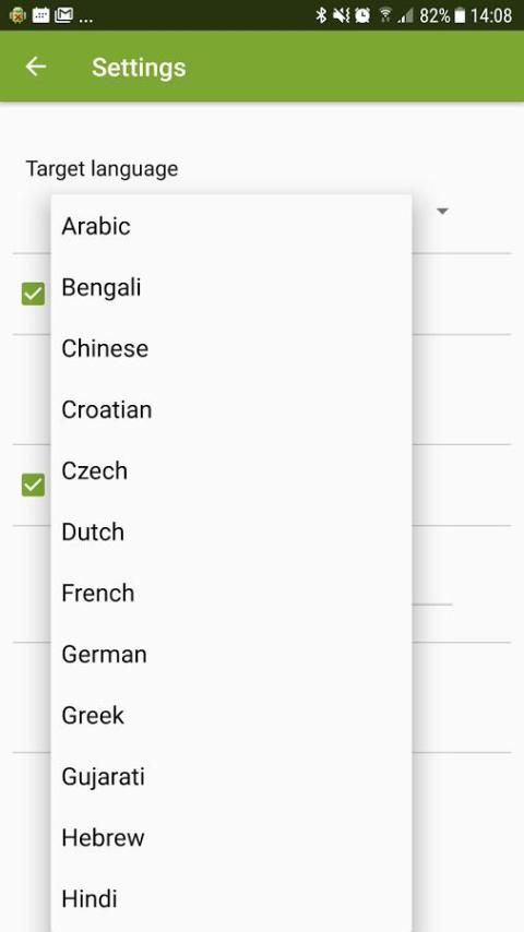 Anda dapat memilih bahasa target yang diinginkan dan yang bahasa untuk menerjemahkan kata sehari-hari.