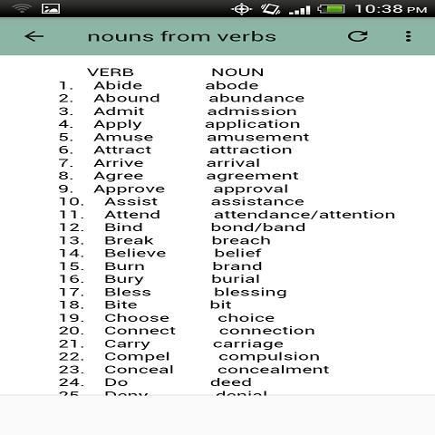 aplikasi ini akan membantu agar youin belajar atau memahami pembentukan kata dalam bahasa Inggris dan bagaimana kata adalah bentuk-bentuk dari kata benda ke kata kerja atau kata kerja untuk noun kata sifat untuk nomina, kata sifat untuk kata kerja dan sebagainya jika aplikasi ini bermanfaat untuk Anda tolong beri kami lima bintang rating untuk memotivasi kita untuk membuat lebih banyak aplikasi mengenai hal itu.
