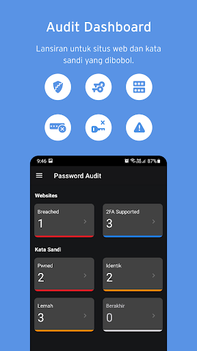 * Audit Kata Sandi- Tetap aman dengan auditor kata sandi bawaan yang selalu memeriksa kata sandi Anda yang diretas, lemah, dan lama.