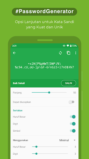 * Penghasil Kata Sandi Kuat - Penghasil kata sandi bawaan untuk membuat kata sandi yang unik dan kuat.