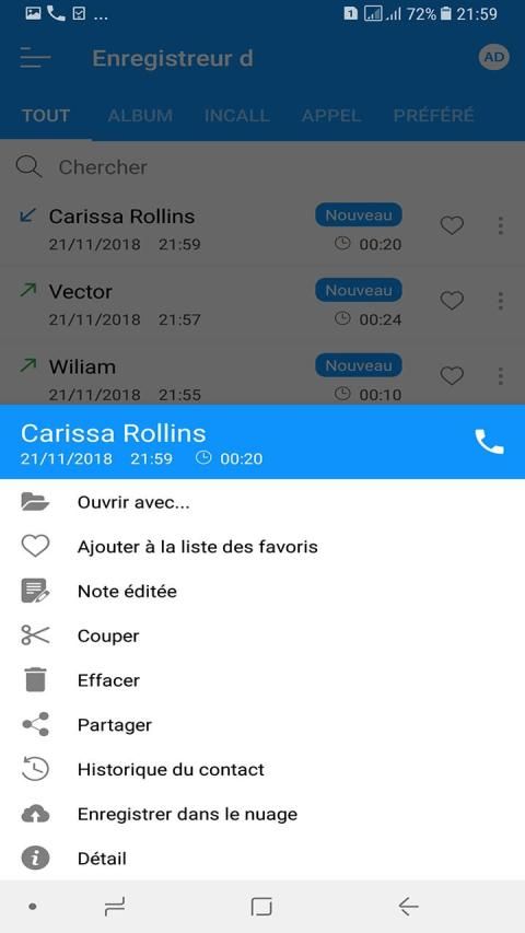 Avec call recorder pouvez enregistrer automatiquement les appels entrants et les appels sortants, a
