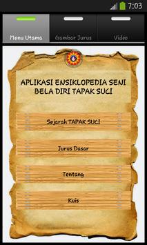 Aplikasi Ensiklopedia Tapak Suci ini merupakan aplikasi yang dapat memberikan informasi tentang sejarah dan jurus-jurus dasar yang dimiliki oleh tapak suci.