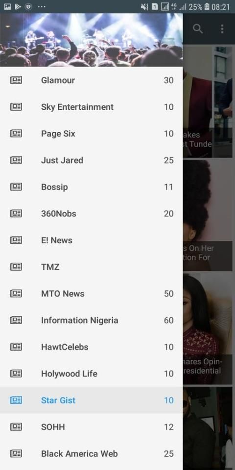 Aplikasi ini menyediakan pembaruan dari sumber berita hiburan utama seperti: