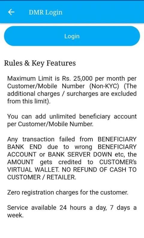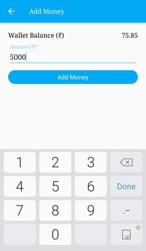 Memuat dompet Anda menggunakan kartu Debit, Kartu Kredit atau Net-banking. Juga, dengan KYC dilakukan, Anda dapat meningkatkan batas dompet Anda dari Rs.100INR ke Rs.1 lakh bebas biaya.