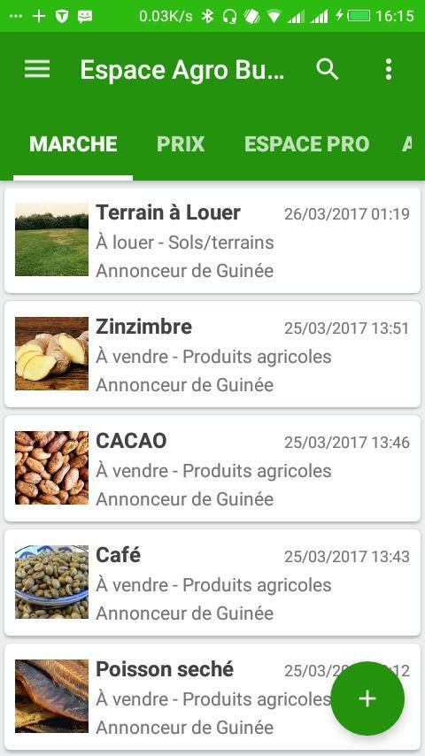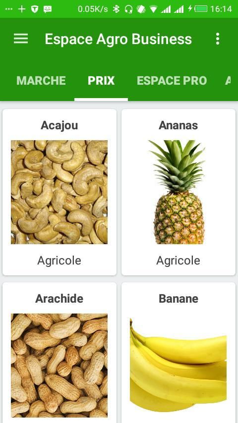 Agro Bisnis Ruang adalah platform untuk menjual secara online dalam produk pertanian, untuk membuat perjodohan antara pelaku pasar, memfasilitasi produksi di sektor ini, untuk memungkinkan visualisasi dari harga di pasar. Aplikasi ini terdiri dari tiga tab: Sebuah "pasar" tab yang berisi daftar semua produk atau jasa dari tab "Harga" menunjukkan daftar produk dan harga mereka, "Profesional" tab yang menampilkan pemasok dan produksi dari tab "Teknis" menunjukkan daftar rincian yang berbeda di berbagai sektor. Antarmuka yang sederhana, intuitif dan cepat.