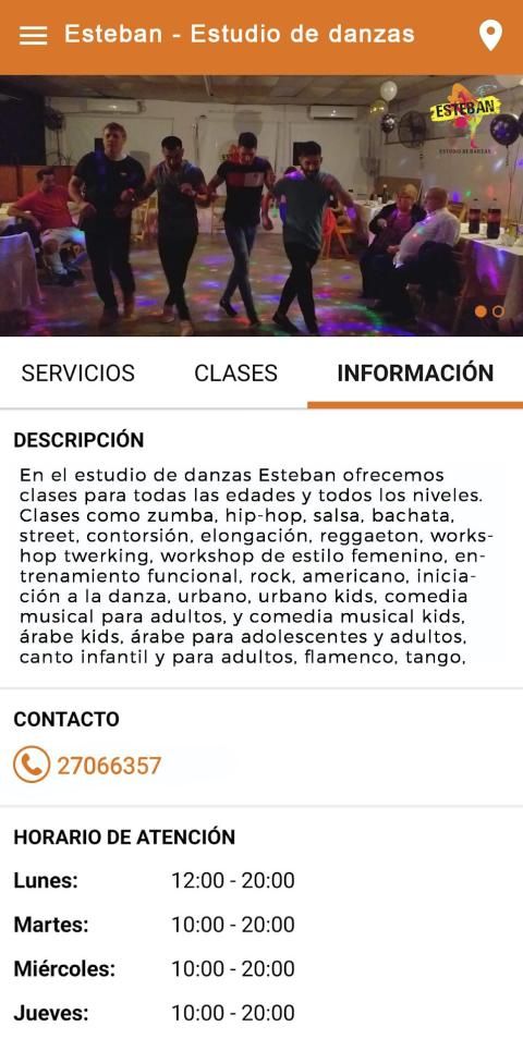... todos los niveles. Clases como zumba, hip-hop, salsa, bachata, street, contorsión, elongación, reggaeton, workshop twerking, workshop de estilo femenino, entrenamiento funcional, rock, americano, iniciación a la danza, urbano, urbano kids, comedia musical para adultos, y comedia musical kids, árabe kids, árabe para adolescentes y adultos, canto infantil y para adultos, flamenco, tango, jazz, contemporáneo, también artes marciales como ninjutsu. Hay cursadas anuales para las actividades como comedia musical e iniciación a la danza son de cursada anual con examen y posibilidad de recibir titulo de profesor de danzas. también tenemos un instructorado de ritmos latinos que recibís un titulo de instructor de ritmos latinos, (salsa, bachata, axe, raggaeton, y latino). En el estudio de danzas esteban también realizamos muestras de fin de año en teatro para adultos y niños también. Ademas alquilamos el espacio para eventos, y ensayos.