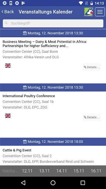 Die mobile Messeführer zur internationalen Fachausstellung der DLG (Deutschen Landwirtschaftsgesellschaft e.V.) für Tierproduktion und Management, EuroTier 2018 in Hannover.