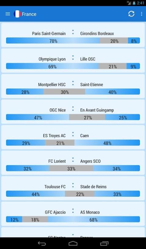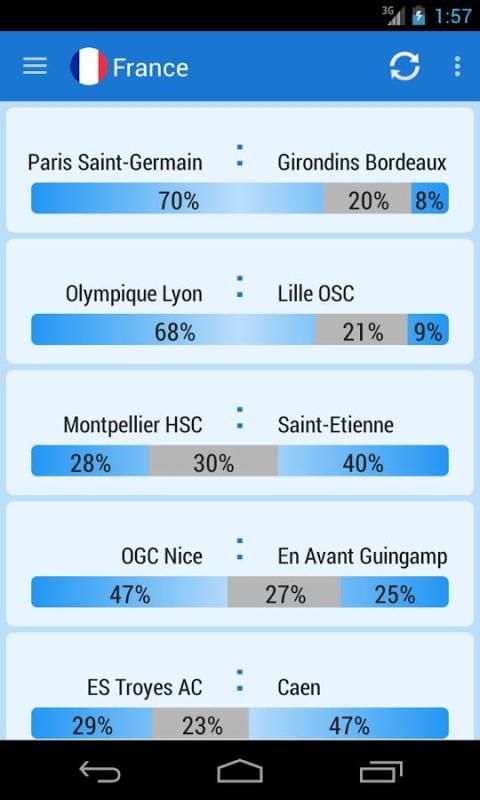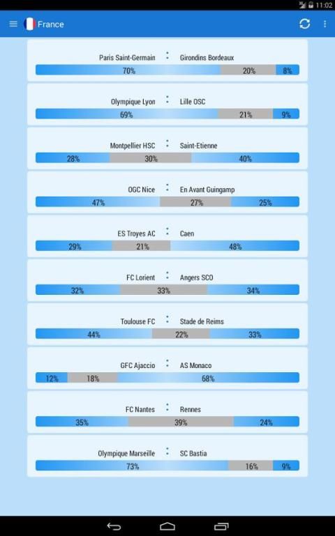 European Football Predictor brings all the action of the major football leagues in Europe, England Premier League, French Ligue 1, German Bundesliga, Italian Serie A, Portuguese Primeira Liga, Russian Premier League and Spanish La Liga, all with the exclusive Predictor feature, scores and live results, the app works offline and allows you to add games to your calendar.
