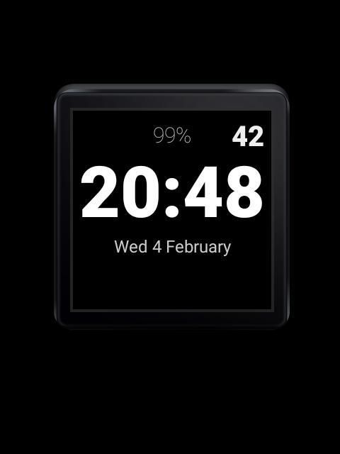 Sehari-hari untuk Android Wear adalah jam digital muka dengan angka besar dan Indikator kedua.