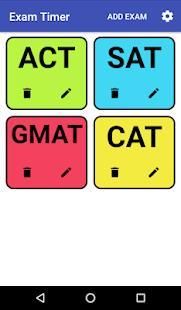 The app comes with pre-set timers for the SAT, ACT, CAT, and GMAT. You can add your own exams at any time.