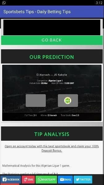 Aplikasi ini memberikan Anda prediksi harian bebas yang dihasilkan dengan pasar taruhan dari betin.co.ke tetapi dapat juga digunakan dengan pasar lain misalnya Sportpesa, Betpawa, 1xbet, Bet365, Sportingbet, Betyetu, Mcheza, Betyetu, Eazibet, Luckybet e.t.c.