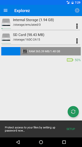 The file manager shows the stress on your devices memory (RAM). Click on RAM icon to navigate to currently running apps on the device. This shows the list of active and dormant apps hooking inside the memory. Use this listing to kill or remove unnecessary apps to relinquish your device memory.