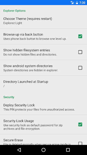 Explorez provide some powerful features when it comes to the security of your data, whether it resides on your device storage or being sent to wire (over network). Some of the features in very initial version of the file manager.