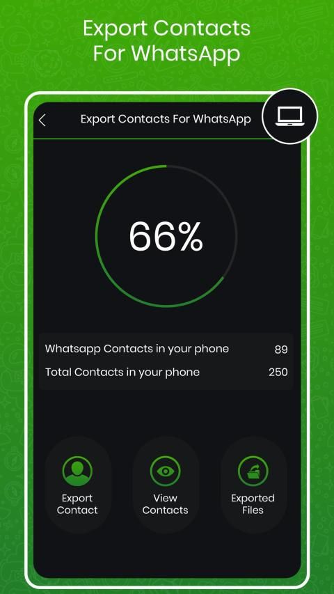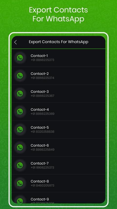 melalui Ekspor semua Kontak yang menggunakan WhatsApp dari sejumlah daftar Kontak dengan Ekspor Kontak untuk WhatsApp. Aplikasi memiliki desain UI sederhana untuk melihat semua kontak, kontak Whatsapp dan juga opsi untuk membuka Whatsapp langsung untuk mengobrol langsung dengan siapa pun.