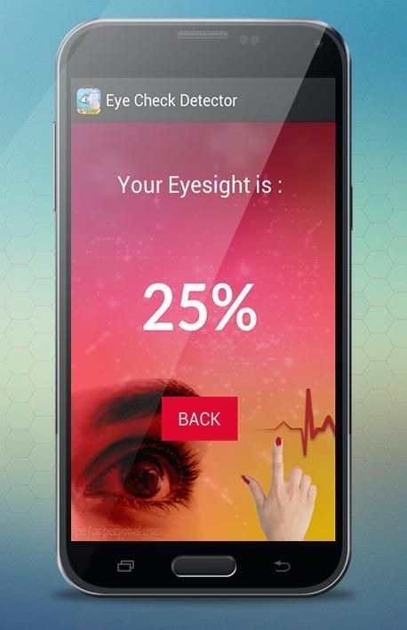 Sekarang dengan cek mata detektor technologie aplikasi baru ini Anda dapat menguji penglihatan Anda di mana pun Anda berada dan ketika pernah Anda inginkan hanya dengan satu touche satu detik Anda mendapatkan hasil yang Anda. Anda hanya perlu menekan dengan jari telunjuk Anda di scanner lingkaran dan tunggu sebentar.