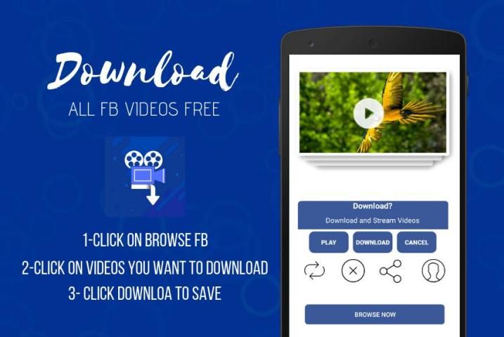 Video Downloader for Facebook memungkinkan Anda untuk menelusuri akun Facebook Anda, feed berita Anda dan dinding teman / halaman Anda menggunakan browser built-in yang memungkinkan Anda untuk memilih video yang ingin Anda unduh dan menyimpannya sehingga Anda dapat menontonnya nanti dan berbagi dengan teman-teman Anda melalui aplikasi yang berbeda.