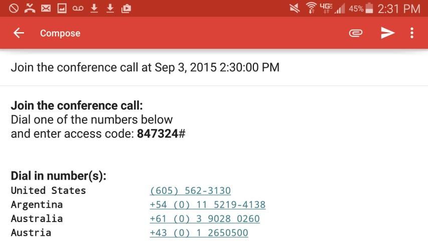The FreeConferenceCall.com Dialer App adalah cara cepat dan mudah untuk membuat panggilan konferensi global. Tidak perlu untuk mengingat kredensial account Anda. Akses Anda FreeConferenceCall.com Dial-in Numbers dan Kode Akses langsung untuk terhubung dengan rekan-rekan, teman dan keluarga di lebih dari 55 negara. Conferencing internasional tidak pernah sederhana.