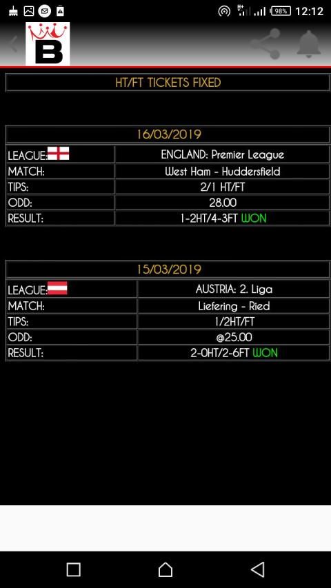 All betting tips shared in our app, prepared with serious betting analyst study, Trust rate is high as 100%.Now you can access Paying Vip betting tips with our free betting apps.