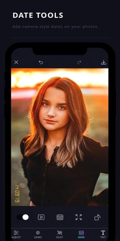 - Add camera style dates on your photos in 4 different styles inspired by digital, film and analog cameras.