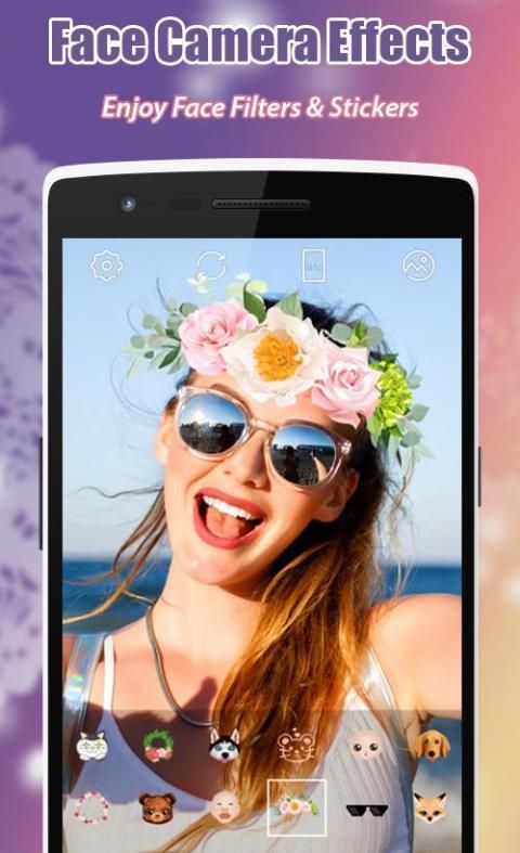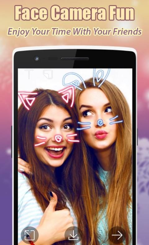 kamera face memungkinkan Anda untuk memiliki akses ke perpustakaan baru snap filter & efek yang memiliki banyak desain baru dalam kategori sekejap. kita semua tahu bahwa kamera wajah adalah sesuatu yang indah untuk menghasilkan selfie indah dengan menambahkan filter sekejap baru untuk foto Anda dan berbagi mereka .. itu sebabnya ada tombol share satu-tap setelah Anda mengedit gambar Anda.