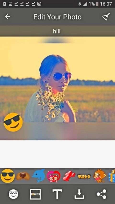 Tag emoji dan smiley, Tambahkan tag pengingat dan emoji, smiley dan membuat foto Anda lebih bergaya.