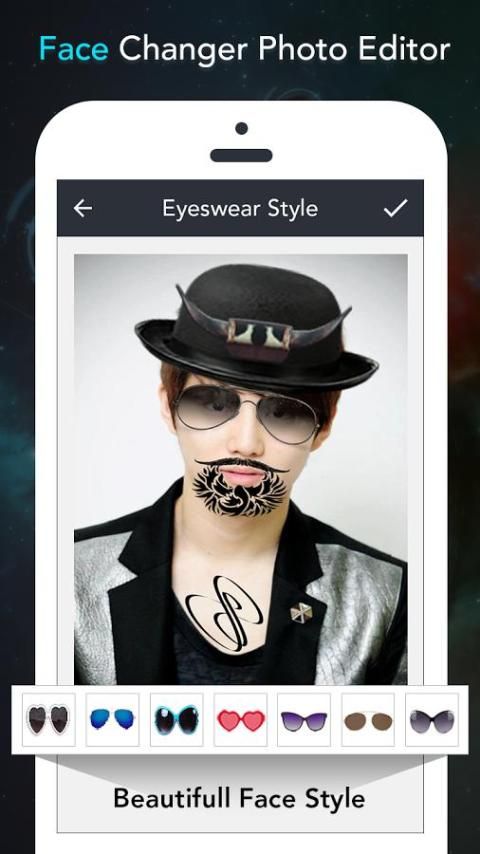 ake foto untuk lucu stiker Photo Changer Editor termasuk, "Kumis", "Beard", "Rambut", "Kacamata" dll, Perubahan muka dengan lucu wajah changer menurut likings Anda dan berbagi foto dengan teman-teman.