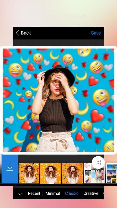 Tambahkan emoji pada gambar dengan ratusan latar belakang emoji yang ada di editor foto emoji wajah kita.