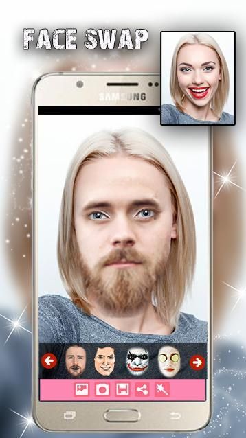 swapping wajah dapat mengubah wajah Anda dengan wajah lain di foto. Swap foto memiliki kekuatan pengenalan wajah, ingin menukar wajah dengan beberapa orang-orang tertentu? Hanya mengambil foto!