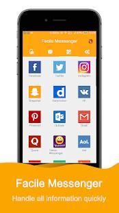 Facile Messenger is a connection of all your social apps, like Twitter, Facebook, Viber, Whatsapp, Messenger, Snapchat that all in one place. Give you an access to a world though Facile Messenger.