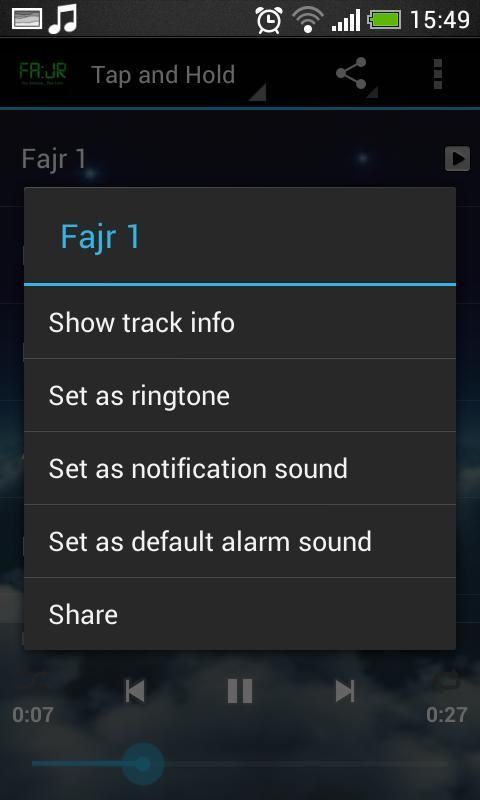 Ini adalah ringtone alarm App untuk membantu semua muslim bangun untuk salatus Subh. Untuk mengatur trek sebagai alarm hanya tekan dan tahan untuk opsi.
