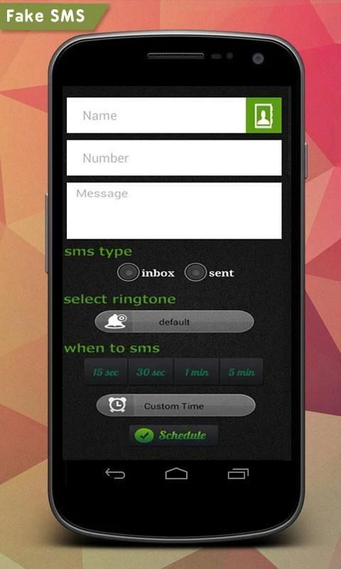 aplikasi ini Anda juga dapat mengirim sms palsu untuk diri Anda pada waktu tertentu.