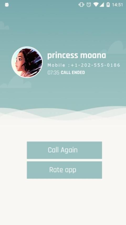 - Membuat prank Princess moana panggilan dengan klik pada tombol panggilan palsu dan membuat menyenangkan dengan teman-teman Anda. Putri moana panggilan aplikasi prank untuk bersenang-senang.