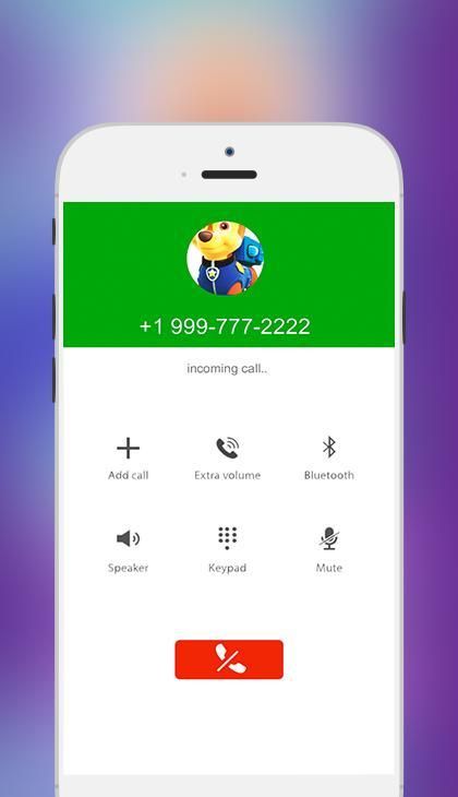 Palsu Panggilan Dari Paw Patrol Gratis 2018 itu aplikasi gratis yang memungkinkan Anda untuk memiliki panggilan video dengan Paw Patroli secara gratis dan dengan HD untuk memiliki waktu lebih lucu dengan teman-teman Anda dan anak-anak. dan membiarkan orang-orang berpikir bahwa Paw Patroli memanggil Anda!