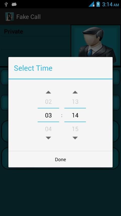 You can select caller from your contact list, and set time from given ones or clock, you can also select a caller voice from your recorded list.