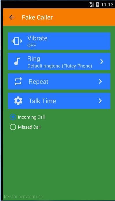 - Pilih nama penelepon, waktu, gambar, suara palsu dan ringtone untuk panggilan simulasi dan palsu baru.