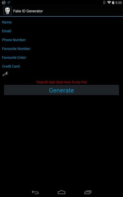 Pernah di membutuhkan ID palsu, ini adalah aplikasi untuk Anda! ID palsu Generator app adalah sebuah aplikasi yang memungkinkan Anda untuk membuat identifikasi palsu dengan cara yang mudah dan tweak hasilnya sesuai dengan keinginan Anda.