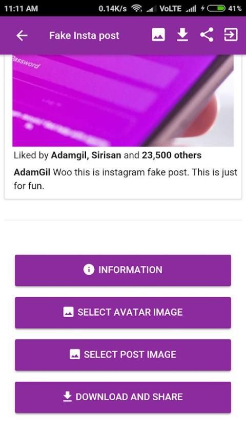 Jika Anda mencari beberapa menyenangkan online, aplikasi ini adalah harus-memiliki. Aplikasi ini memungkinkan Anda membuat screenshot seperti foto-foto Instagram chatting palsu dan posting. Anda dapat menyesuaikan pos dengan sebanyak-orang seperti yang Anda inginkan. Setelah selesai, Anda dapat menyimpan palsu pasca Instagram dan berbagi dengan teman-teman Anda.