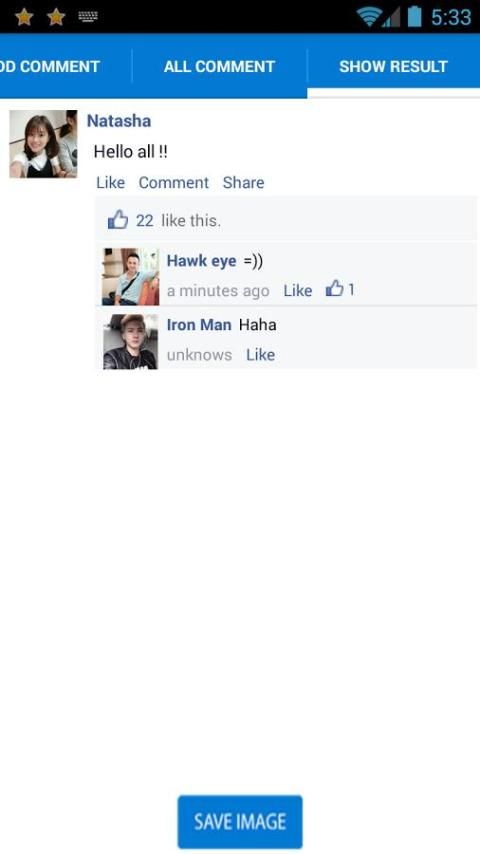 Status palsu adalah aplikasi memungkinkan Anda membuat status dan komentar untuk status ini. Misalnya, negara menciptakan nama laba-laba, maka komentar di bawah ini adalah status karakter lain sebagai dewa guntur, yang, ...