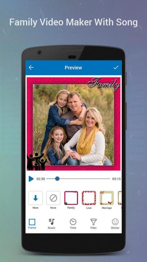 Keluarga Maker Video With Music adalah salah satu yang terbaik editor video, pembuat slide foto dan editing film aplikasi di Android Store. Membuat video profil dan berbagi cerita foto video ke teman-teman Anda.